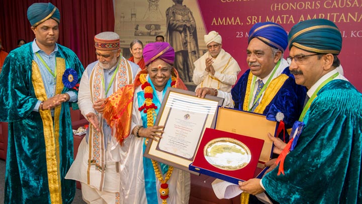 Amma ha ricevuto un dottorato onorario in Lettere umane dall’Università di Mysore.