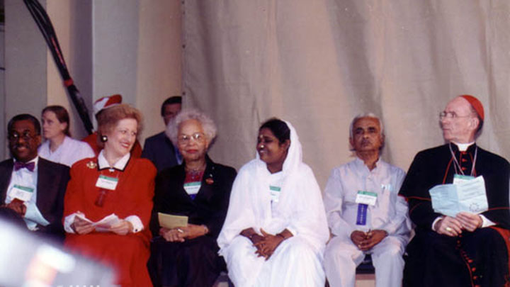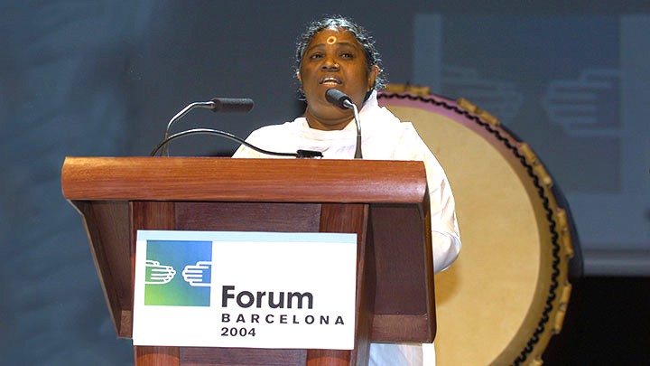 Amma ha tenuto un discorso di apertura al Parlamento delle religioni del mondo del 2004.