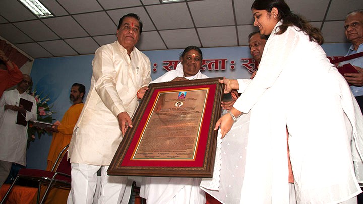 Amma è stata insignita del primo Vishwaratna Puraskar (Premio Gemma del Mondo) dal Parlamento indù.