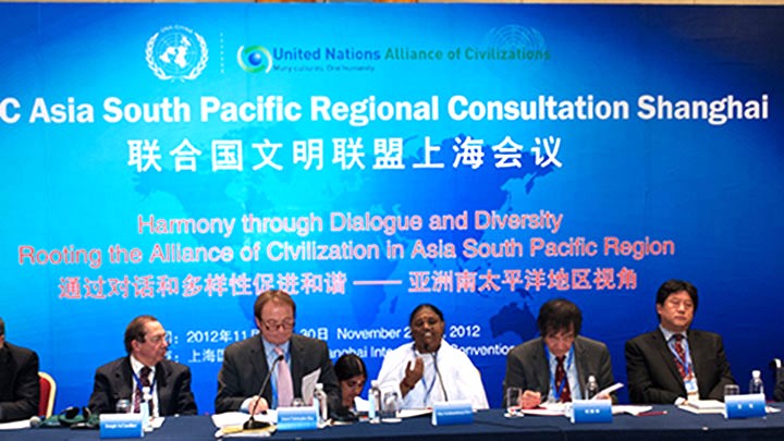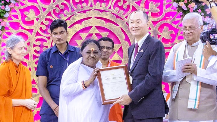 Amma si è rivolta all’Alleanza delle Civiltà delle Nazioni Unite a Shanghai su “Coesistenza e Impegno tra culture”. Amma era l’unico leader spirituale invitato alla conferenza.