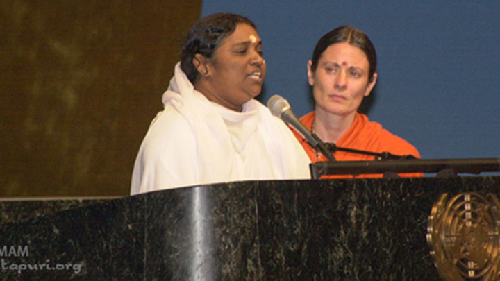 Amma si rivolge alle celebrazioni interreligiose nel 50° anniversario delle Nazioni Unite.