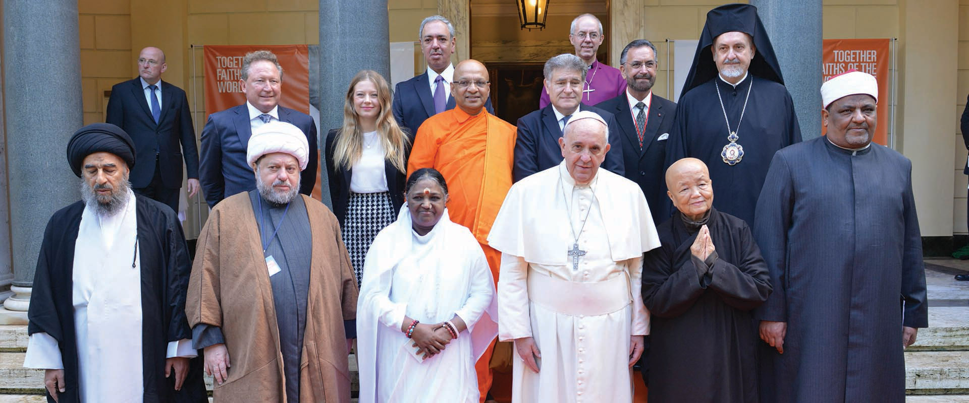 Con Papa Francesco e leader religiosi globali che rappresentano le principali tradizioni di tutto il mondo, Amma ha firmato la Dichiarazione interreligiosa per ponere fine alla schiavitù moderna.