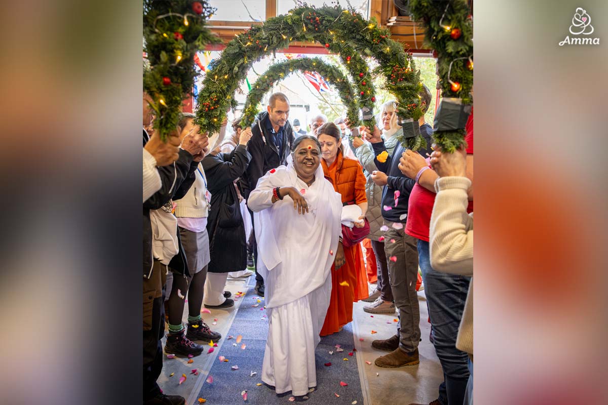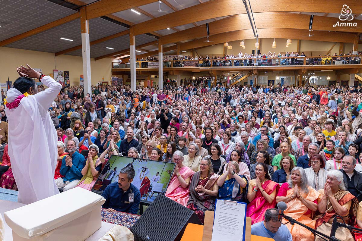 La sala ha fatto eco all’invito a “trovare la luce interiore” lanciato da Amma con un sincero applauso, mentre i giovani dell’AYUDH si sono impegnati ancora una volta ad amare, servire e assumere una leadership responsabile.