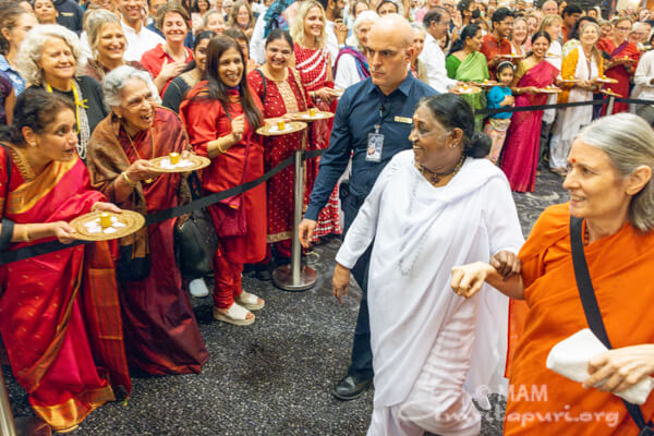 Amma ha guidato sessioni di meditazione, cantato incantevoli bhajan e condotto preghiere per la pace nel mondo. L’atmosfera è stata soffusa di pace e tranquillità, trascinando le menti delle persone in un senso profondo di santità e di divina presenza.