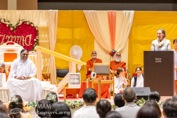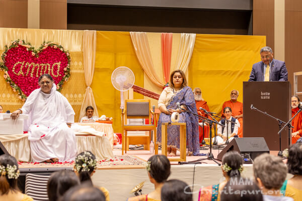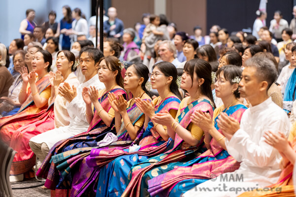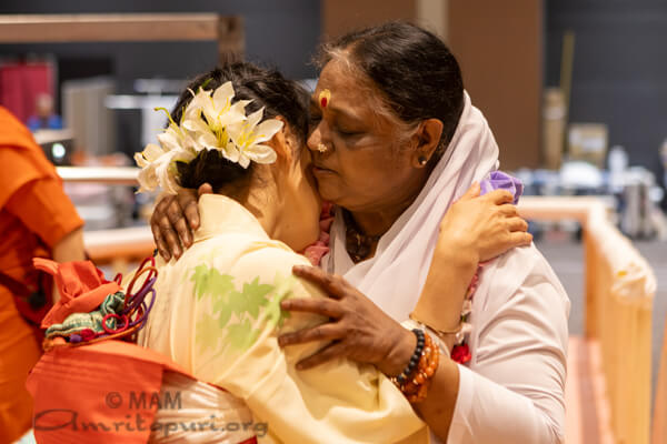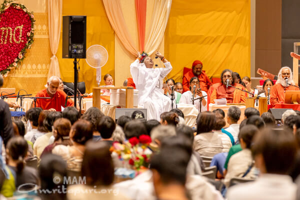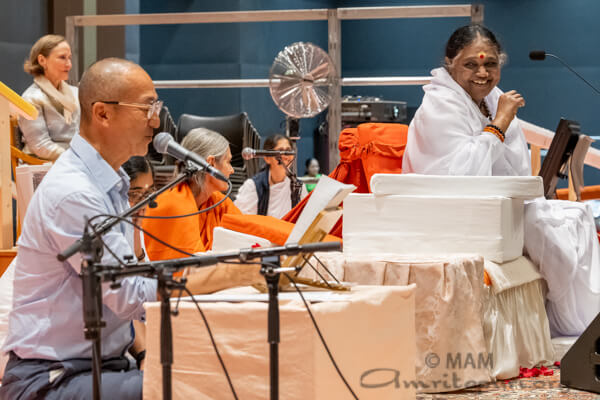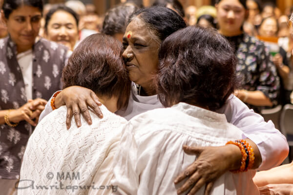 Durante i tre giorni dell’evento, Amma ha guidato sessioni di meditazione, preghiere per la pace nel mondo e ha cantato bhajan che hanno ispirato l’anima dei molti presenti. L’atmosfera era piena di devozione, mentre diverse migliaia di persone venivano a ricevere l’abbraccio materno di Amma. Come sempre, Amma ha continuato instancabilmente a dare il darshan per tutto il giorno e la notte, assicurandosi che ogni persona ricevesse le Sue benedizioni.