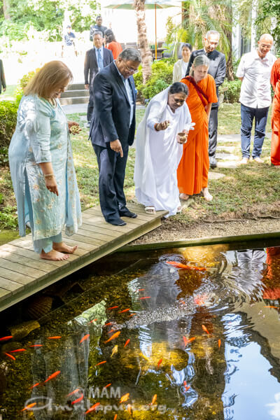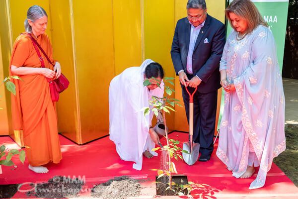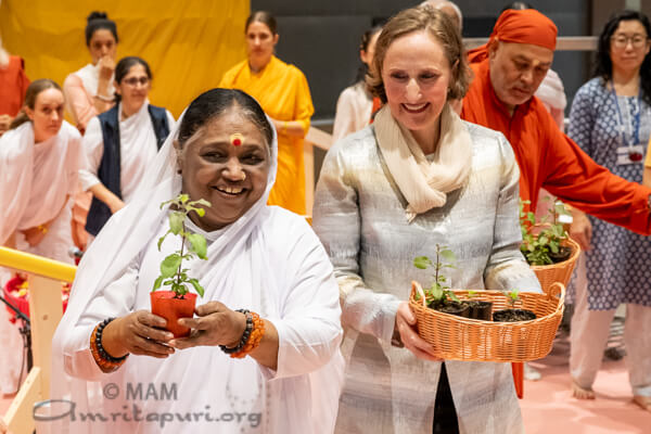 Anche la dottoressa Elisabeth Bertagnoli, ambasciatrice austriaca in Giappone, ha accolto Amma e ha partecipato alla distribuzione di piante di Tulsi ai giovani membri dell’AYUDH, nell’ambito dell’iniziativa Green Friends del MAM. In un evento speciale il 15 agosto, giorno dell’indipendenza dell’India, Amma ha piantato alberi all’India House di Tokyo, aderendo alla campagna #Plant4Mother lanciata dal Primo Ministro indiano, Shri Narendra Modi. Durante questo nobile gesto è stata accompagnata dall’ambasciatore Sibi George e da sua moglie.