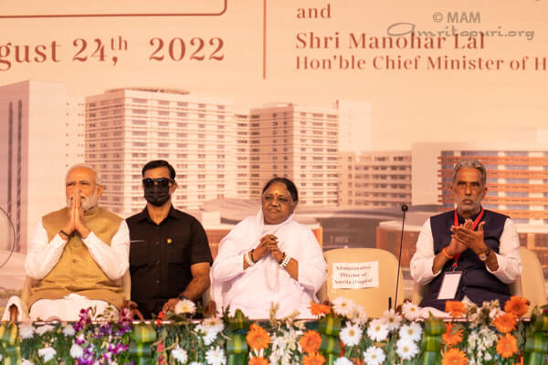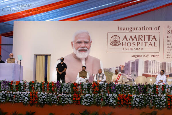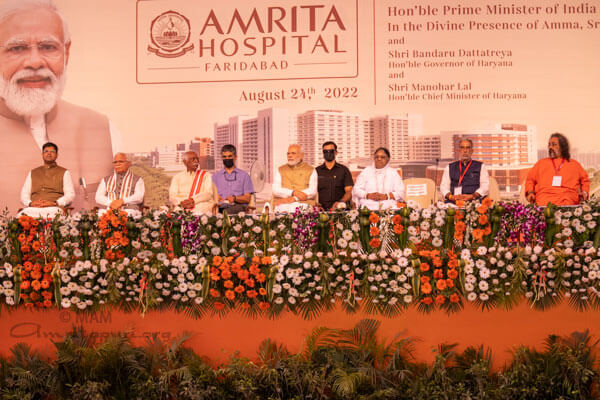 Mercoledi 24 agosto, alla divina presenza di Amma, il primo ministro indiano Shri Narendra Modi ha inaugurato l’Amrita Hospital di Faridabad, che dispone di 2.600 posti letto su una superficie di oltre 500.000 metri quadrati. Una volta pienamente operativa questa struttura sarà il più grande ospedale privato dell’India.