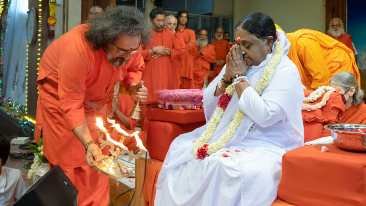 Swami Amritaswarupananda Puri, il devoto più anziano di Amma ha fatto un discorso augurale dicendo: “Sono 69 anni dalla nascita Amma, che ha preso questa forma di corpo sulla Terra. Il corpo di Amma ha 69 anni anche se lei è molto più antica. Lei è l’esempio dell’eterna giovinezza”.