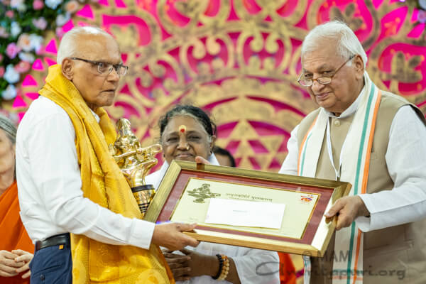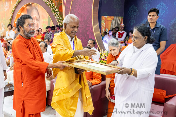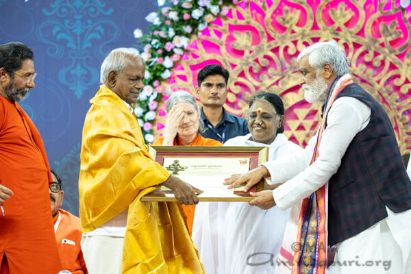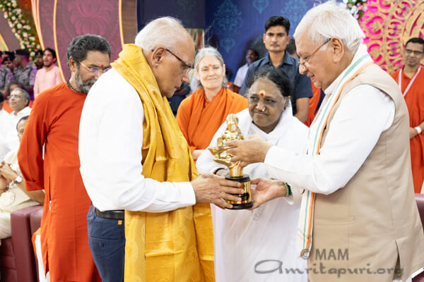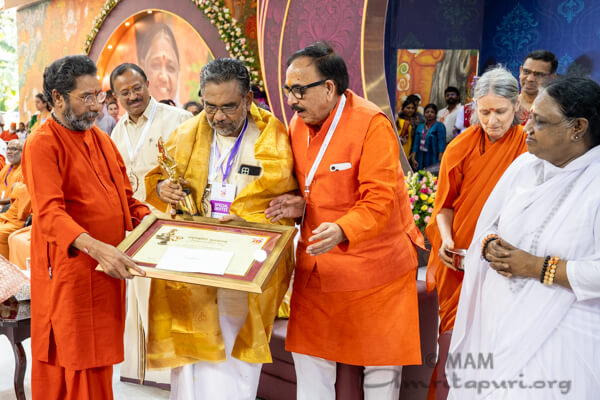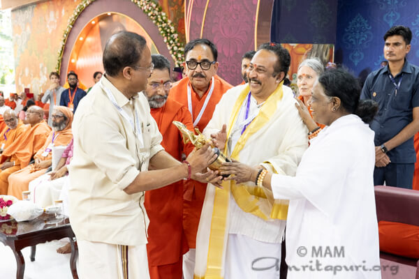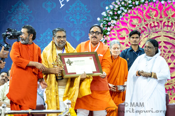 In una parentesi della ceremonia durante l’Amritavarsham 70 alla presenza di Amma, sono stati assegnati i premi Amrita Keerti-Puraskara per gli anni 2020-2021-2022-2023 per gli eccezionali contributi alla cultura ed alla filosofia Vedica.