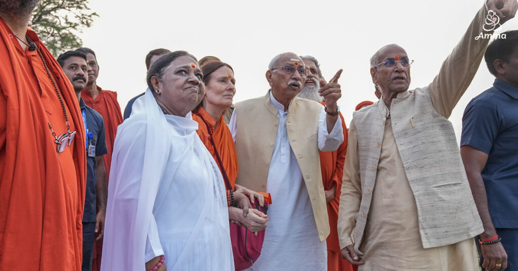 Oltre 1.200 residenti dell’ashram e volontari di Amma, migliaia di sadhu e sanyasi e più di 7.000 devoti di Shri Ram si sono riuniti nel pandal speciale, mentre migliaia di altri hanno seguito l’evento online. È stato un momento di realizzazione: il risultato di secoli di impegno per la giustizia, devozione incrollabile, servizio instancabile e il ripristino di un’identità dharmica per un nuovo Bharat.