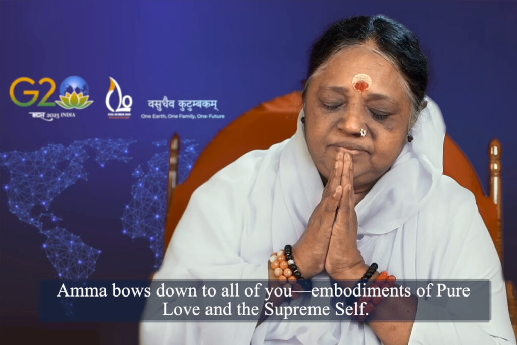 “L’umanità si trova oggi ad affrontare sfide straordinarie, anche a livelli più sottili, che forse non siamo in grado di percepire o comprendere. L’enorme balzo in avanti della scienza e della tecnologia, insieme all’uso improprio di internet e all’aumento dell’abuso di droghe tra gli studenti, stanno contribuendo alla situazione attuale. Gli aspetti negativi della tecnologia stanno sollevando preoccupazioni allarmanti sul futuro dell’umanità. Ora vediamo una nuova generazione che cresce priva di coscienza e di valori morali. Di conseguenza, la violenza, in vari aspetti e forme, sta aumentando”, ha detto Amma nel suo video messaggio come presidente del C20.