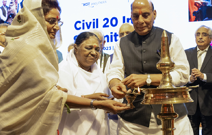 Il Vertice del Civil 20 si è concluso a Jaipur, in Rajasthan. Il Civil 20 è un gruppo di lavoro del G20 che dà voce alle istanze delle organizzazioni di volontariato a livello locale, nazionale e internazionale. Più di 200.000 persone provenienti da 74 Paesi hanno partecipato alle deliberazioni. Con Amma alla presidenza, tutti noi possiamo trarre ispirazione da lei e diventare fiamme che diffondono la luce della compassione per rispondere ai bisogni più urgenti del mondo.