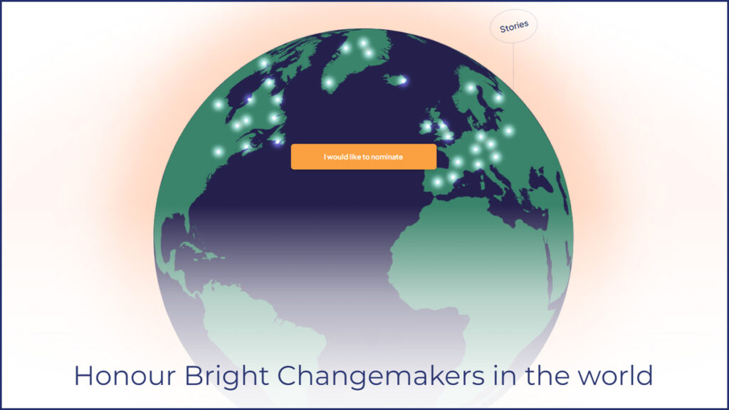 Ogni candidatura sarà rappresentata come una scintilla di luce su una mappa digitale globale, che simboleggia la diffusione degli sforzi collettivi e illumina la strada verso il progresso. Le storie selezionate saranno condivise e i candidati riceveranno una nota di gratitudine per informarli di essere stati una fonte di ispirazione e di sostegno.