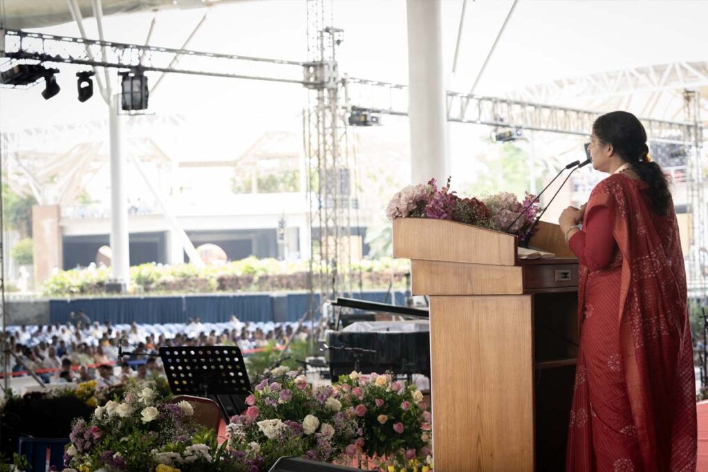 - La prof.ssa Bhavani Rao ha rappresentato Amma all’evento condividendo che di fatto spiritualità e vita quotidiana sono inseparabili.