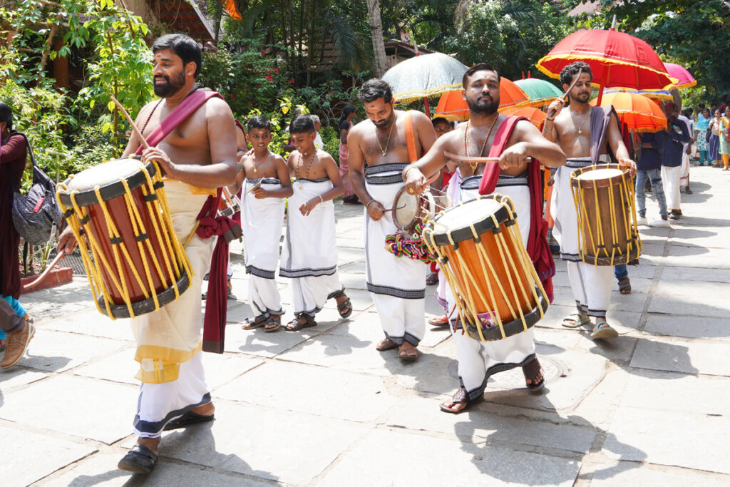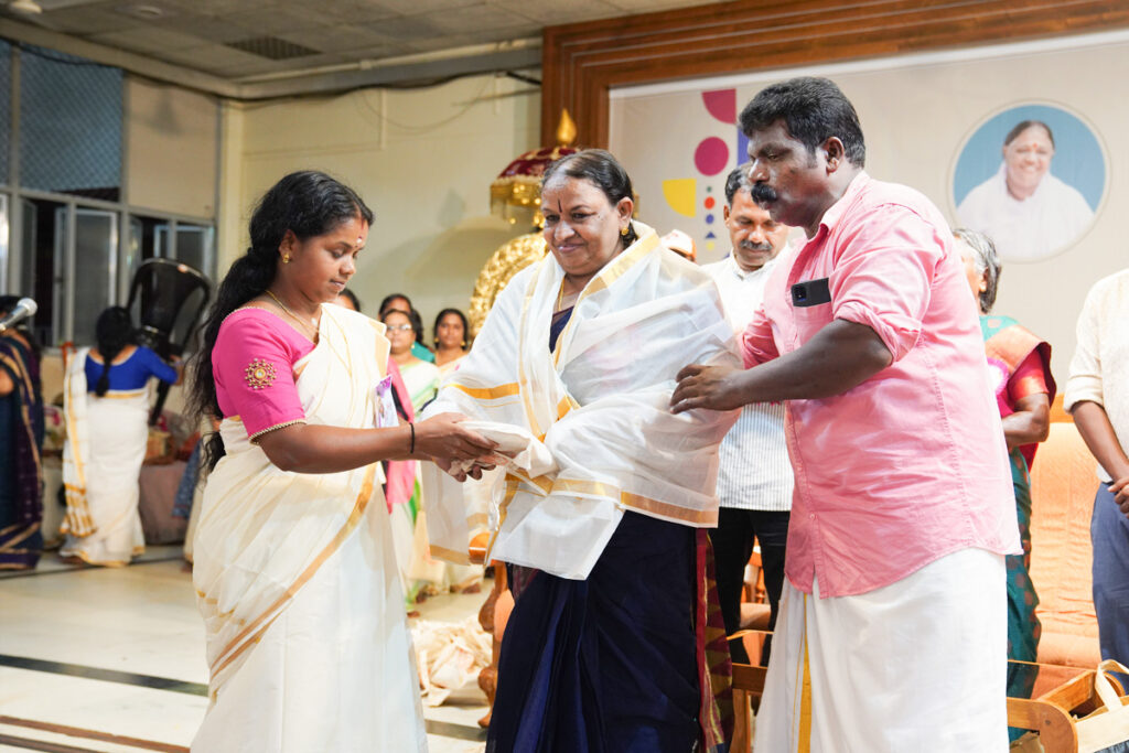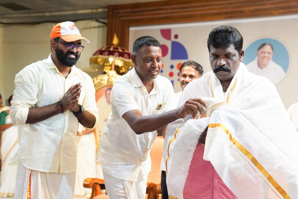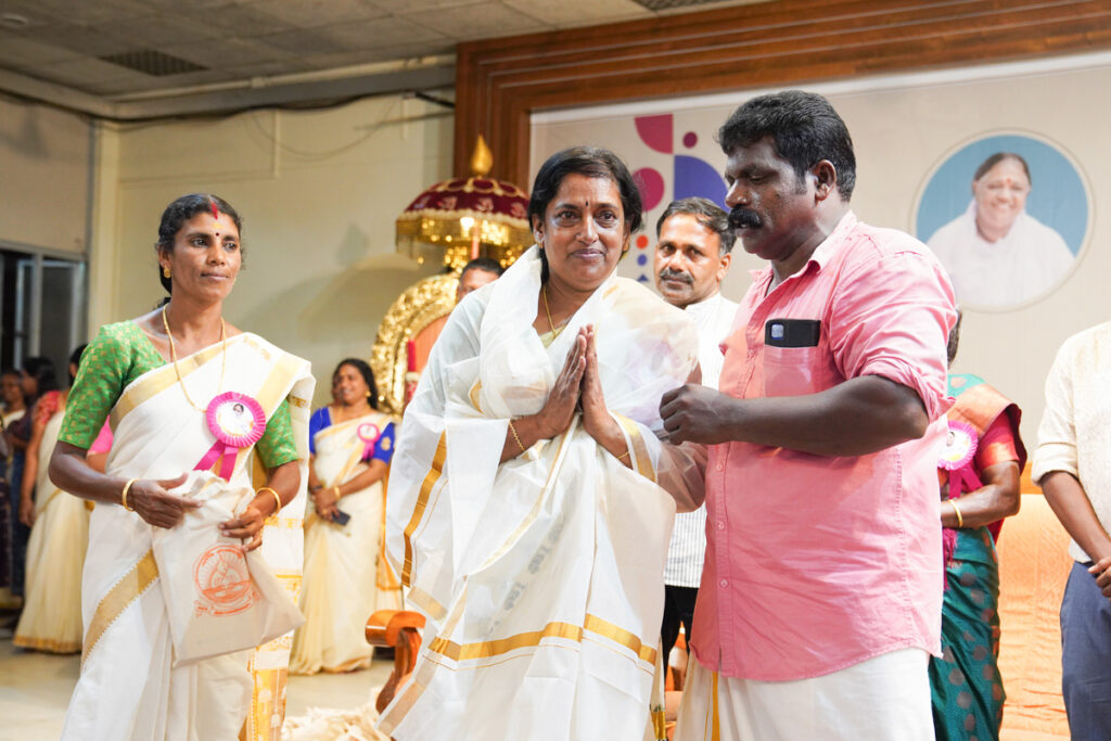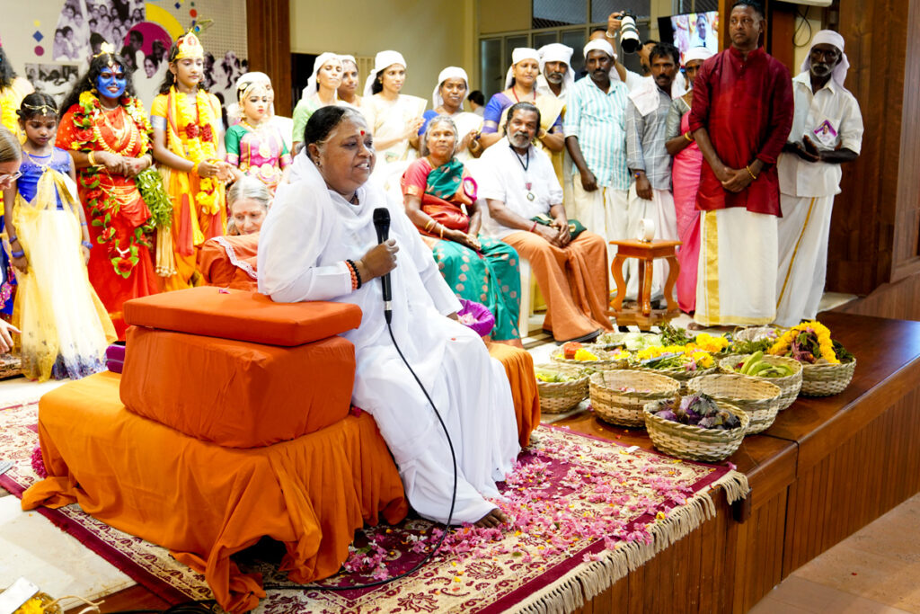 Oltre 1500 alunni di tutte le età si sono riuniti ad Amritapuri per festeggiare il 34° anno dall’adozione da parte del MAM dell’orfanotrofio di Paripally in Kerala. Ciò che una volta era una triste storia di bambini malnutriti in condizioni igienico sanitarie pessime è diventata occasione di festeggiamento annuale gioioso pieno di eventi culturali tradizionali per ringraziare l’intervento salvifico della Grazia Divina nei loro confronti.