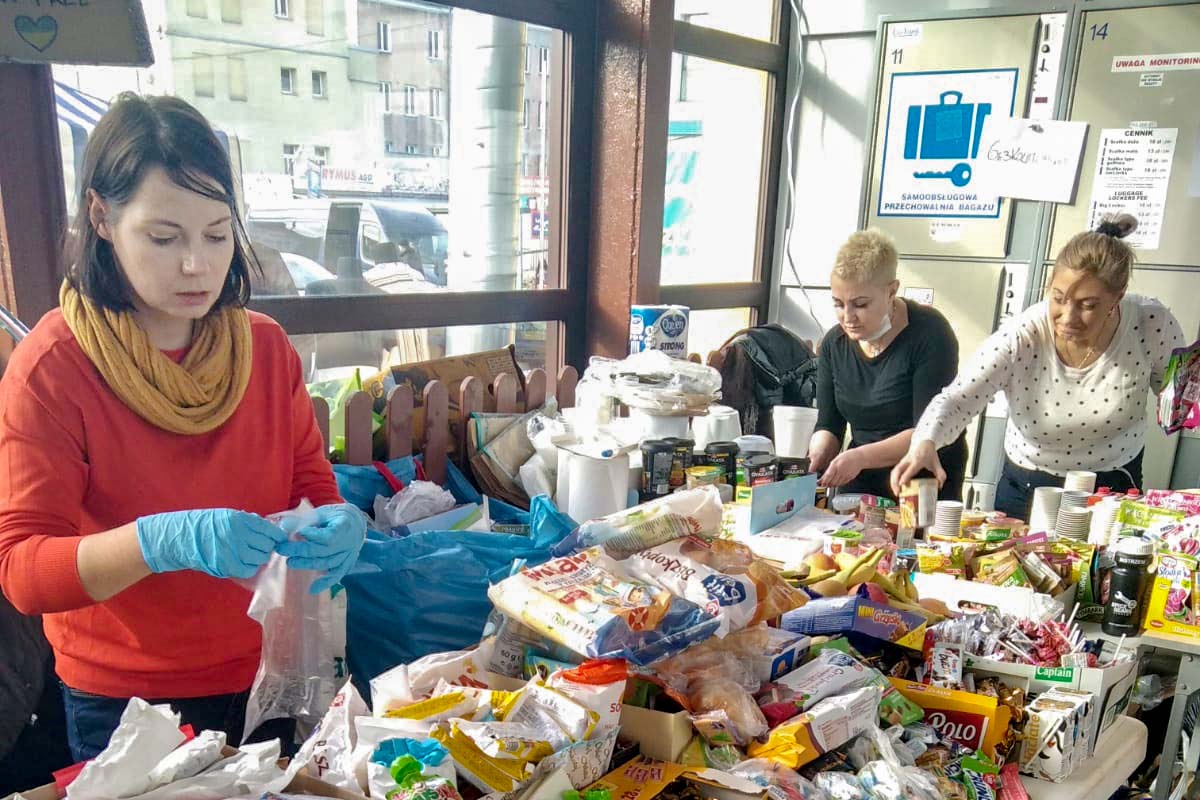 Arrivano, si riposano un po’, e poi iniziano immediatamente ad aiutare le altre persone. Il campo di Amma Polonia è a circa 500 metri dal checkpoint di confine, e ai rifugiati viene dato il tempo di riposare mentre i volontari si adoperano per loro. I punti di sosta successivi sono nelle città di Varsavia, Lodz e Cracovia. Alcune persone si trovano in condizioni di necessità particolarmente importanti. Krol racconta che ci sono persone anziane e donne sole con bambini, e hanno bisogno di assistenza dopo aver viaggiato per distanze così lunghe trasportando tutti i loro averi.