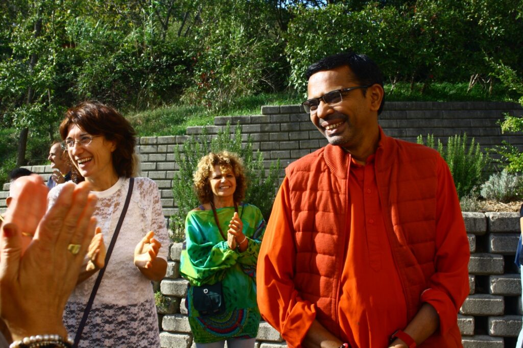 Nel primo pomeriggio di sabato, Swami Shubamritananda Puri è arrivato al Centro, accolto dalla gioia dei partecipanti al ritiro. Dopo il momento di condivisione, Swami, che era stato presente in occasione dell’inaugurazione un anno fa, ha ricordato a tutti quanto il Centro sia cresciuto e si sia trasformato grazie all’impegno e all’amore dei residenti e di tutti i volontari coinvolti.