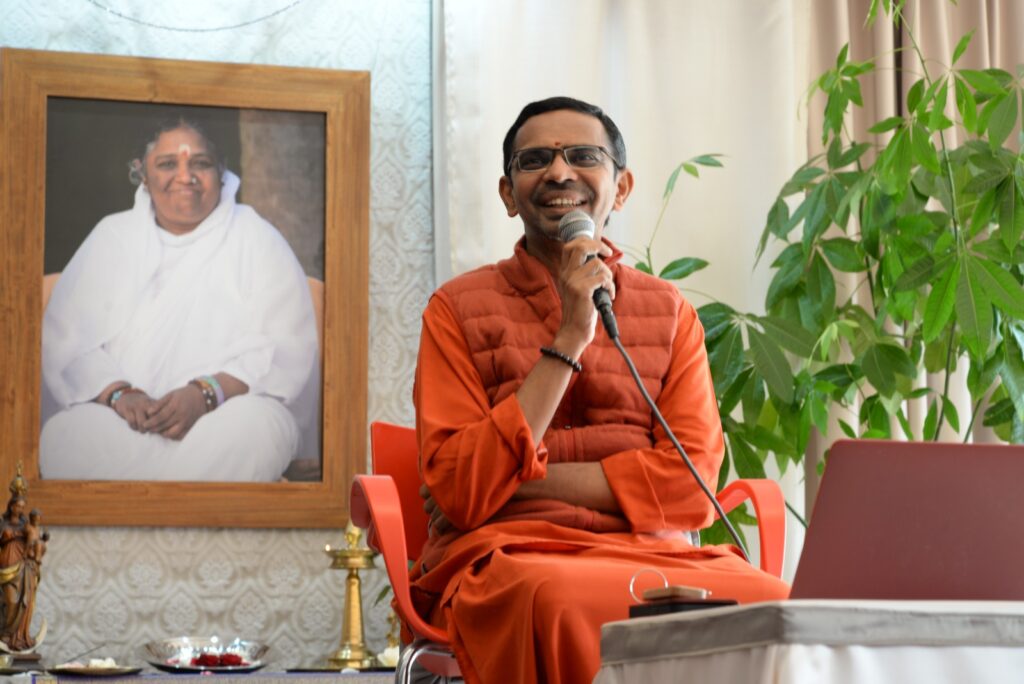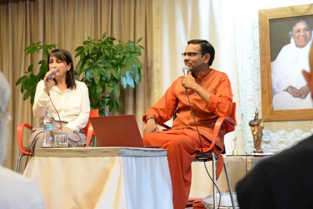 Domenica il programma è iniziato con l’Atma Puja, una cerimonia per la pace guidata da Swami Shubamritananda Puri, che ha illustrato con grande chiarezza e semplicità i principii che animano da tempi antichissimi questo rituale propizio in India. Dopo il momento della colazione, Swami ha tenuto un discorso molto bello sull’importanza del Centro e del servizio disinteressato. Ricorrendo a esempi semplici ed efficaci, Swami ci ha parlato dei principii su cui si fondano i Centri di Amma e ci ha invitato ad espandere le attività del Centro, trasformandolo in un luogo di trasformazione per noi e per il mondo. È seguita un’appassionata sessione di domande e risposte, un’opportunità davvero preziosa per tutti i presenti, che hanno potuto beneficiare della grande saggezza, chiarezza e semplicità di Swami.
