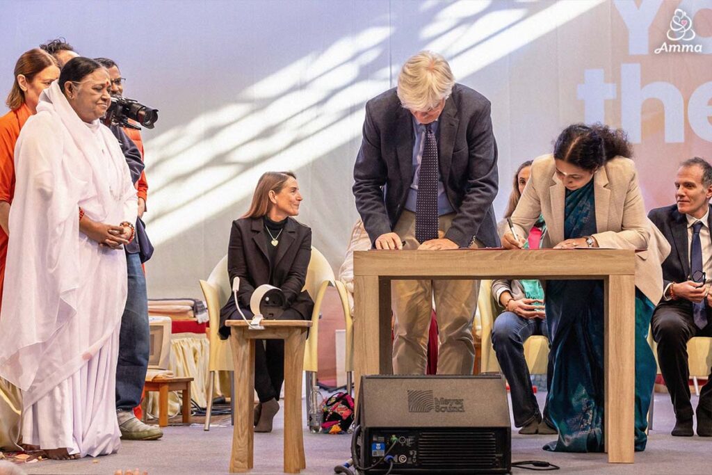 Alla presenza di Amma, quale rettrice dell’Amrita University, sono stati ratificati alcuni accordi accademici a livello internazionale come i due Memorandum of Understanding (MoU) con istituzioni di spicco in Italia, con obiettivo la resilienza climatica e ai disastri naturali.
