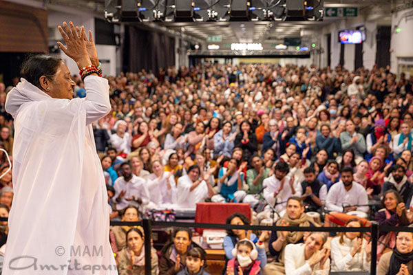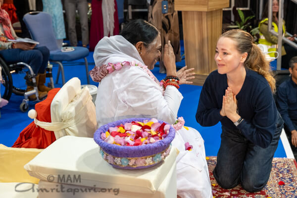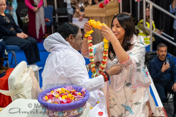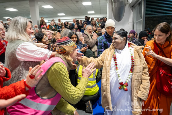 Il primo giorno del programma, Amma è stata accolta nel Regno Unito da diversi dignitari, tra cui la deputata Shivani Raja, l’avventurosa Karen Darke e l’imprenditrice Poppy Jamie.