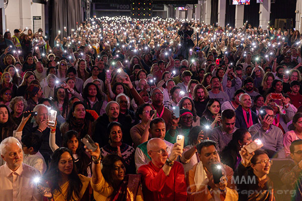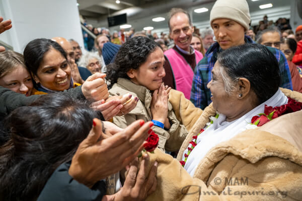 Per i tre giorni successivi, grandi folle hanno sfidato gelide temperature all’aperto per sperimentare il calore dell’abbraccio di Amma. Ogni giorno la sala era colma di persone che hanno condiviso momenti meravigliosi di meditazione, satsang, bhajan e darshan.