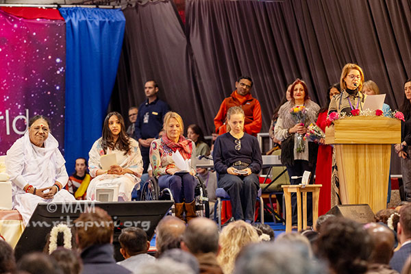Successivamente, Karen Darke, ciclista paralimpica britannica, paratriatleta, esploratrice e scrittrice d, ha detto: “La vita è un’avventura, un viaggio da cui imparare e crescere. Nulla di ciò che ho mai realizzato sarebbe stato possibile senza persone straordinarie, connessione, compassione, amore, fede e fiducia. Pensare di non essere abbastanza, fa parte dell’essere umano, ma amo ricordarmi questa citazione: ‘La nostra mente è un giardino, i nostri pensieri sono i semi: possiamo piantare fiori o far crescere erbacce’. Con questi fiori possono accadere cose meravigliose, ancora di più da quando ho incontrato Amma, perché la magia accade intorno ad Amma.”