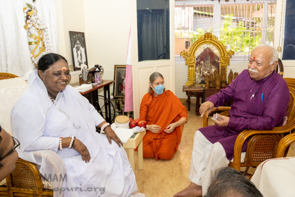 Il dr Mohan Bhagwat, capo del Rashtriya Swayamsevak Sangh, ha fatto visita ad Amma, per la seconda volta, presso l’ashram di Amritapuri. Ha ricevuto le Sue benedizioni e l’incontro è durato circa 2 ore.