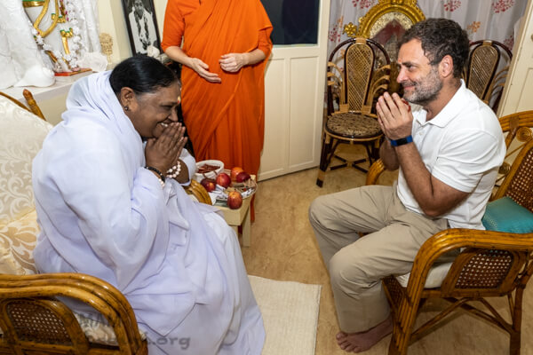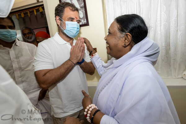 Il leader del Congresso Rahul Gandhi, che si trovava in tour nel distretto di Kollam, ha visitato Amma ad Amritapuri.