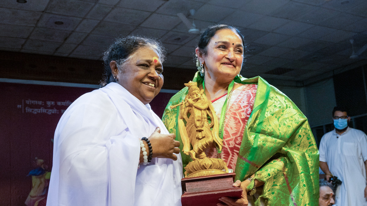 La dr.ssa Sandhya Purecha, nota per essere la più eminente docente indiana nel mondo dello spettacolo, si è recata ad Amritapuri per incontrare Amma. Il governo indiano ha di nuovo conferito l’incarico a questa ballerina classica di guidare il W20, il gruppo di lavoro per l’uguaglianza di genere per il summit del G20 indiano. Amma presiede il C20, il gruppo di lavoro del G20 sulla società civile.