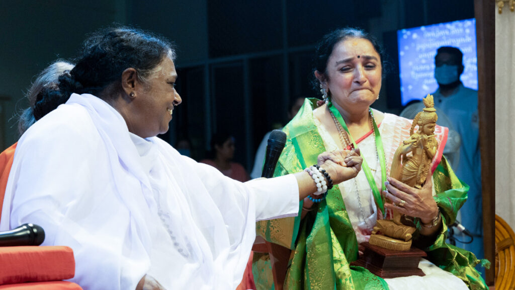 “È Dio, è Amma che mi ha chiamata qui oggi. Sono molto fortunata. Mi ha accolta e accettata come una figlia. Per me questo è matrudevo bhava: lei è la Madre Divina di tutti noi. Che la Sua grazia possa scendere su di noi sempre. Mille grazie, grazie”, ripeteva la dr.ssa Purecha.