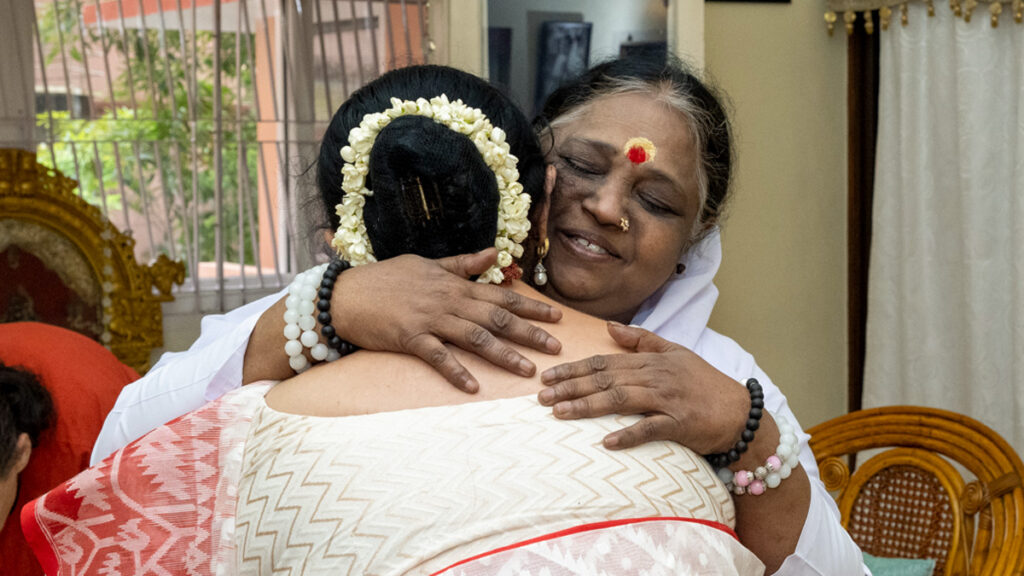 Con le lacrime agli occhi la dr.ssa Purecha ha confessato che desiderava incontrare Amma da molto tempo ma si erano frapposti numerosi ostacoli. Ad esempio, una volta non era riuscita a partecipare al compleanno di Amma per un impegno precedentemente preso a Boston. Un’altra volta venne invitata per un incontro con Amma nel Maharashtra, ma non riuscì ad andare.