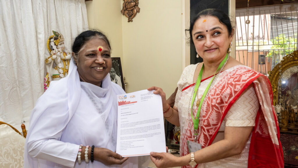 Summit G20: la coordinatrice del gruppo indiano sull’eguaglianza di genere fa visita ad Amma a capo del C20